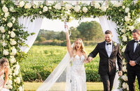 Gabrielle and Matthew’s luxury wedding at Kent Island Resort transformed the Barn Ballroom into a floral dreamscape, complete with overflowing, over-the-top blooms that made the entire space feel magical. Their celebration was packed with unforgettable details — from a breathtaking cake swing that showcased their wedding cake like art, to an adorable ice cream bicycle cart that had guests smiling all night long. Their signature drink escort display was a showstopper, perfectly paired with a festive bubbles welcome drink truck that greeted guests the moment they arrived, setting the tone for an elevated and joy-filled celebration. Every moment of Gabrielle and Matthew’s day felt thoughtful, immersive, and beautifully them — a luxury Maryland wedding full of style, surprises, and pure happiness. ✨