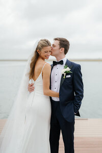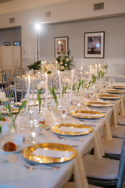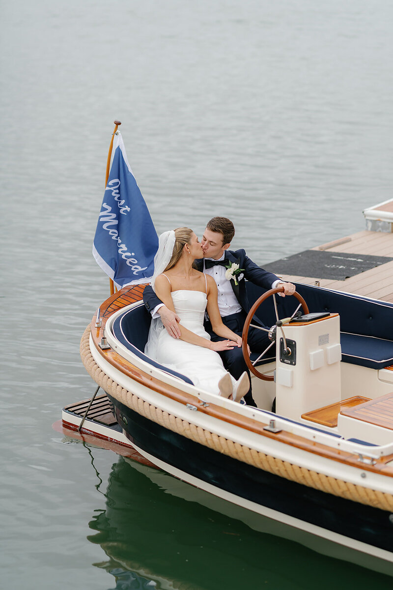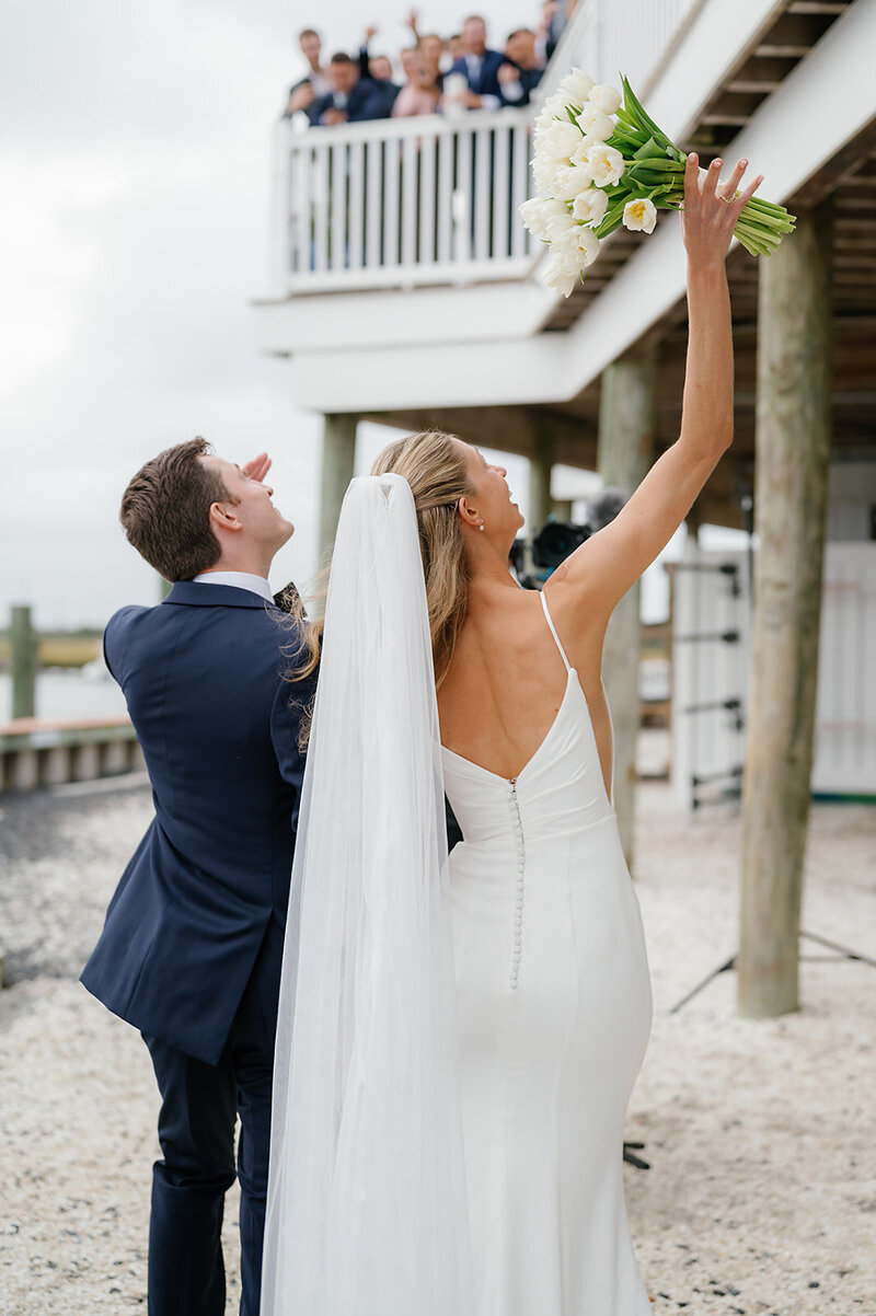 Emily and James wanted a wedding on the water but didn't want it to be overwhelmed by a Beach theme. We incorporated minimal touches of the Shore into their wedding including Beach tag Escort Cards , a Boat for Beer on the Deck and a Boat Signature Drink Sign. The rest of their design was a classic clean with tulips, ivory linens and gold accents.